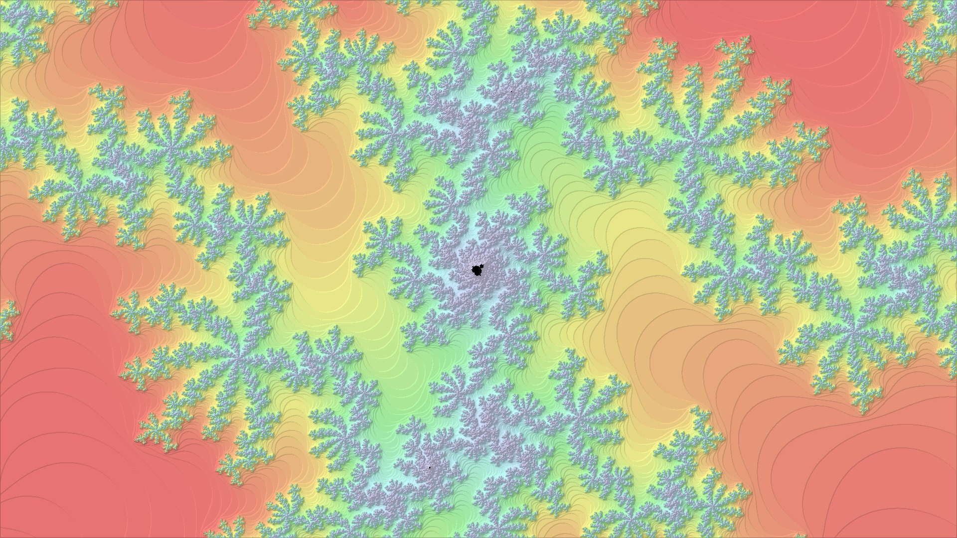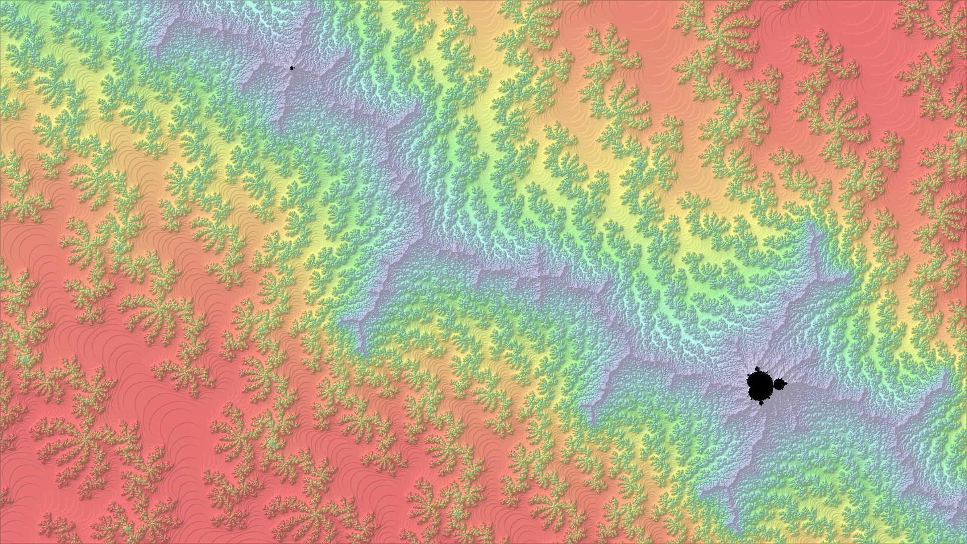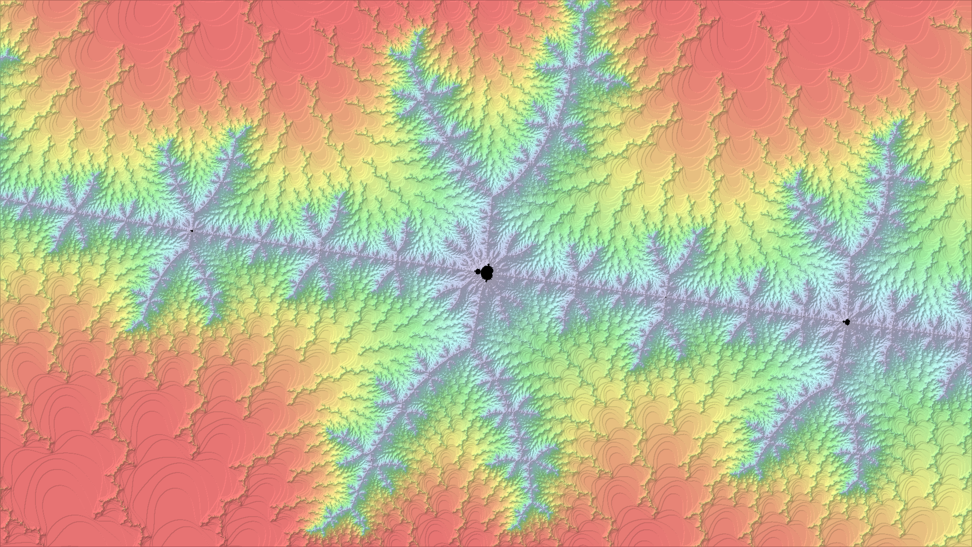 And what's more I've been doing some experiments with hill-shading to make the images reveal more of the structure, and also playing with the color palette so that the black of the actual Mandelbrot stands out better.
