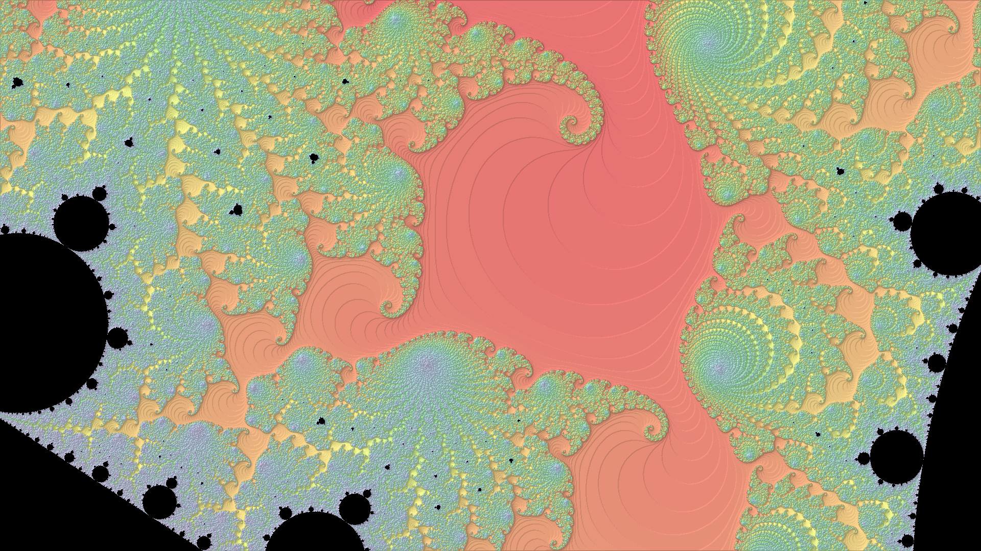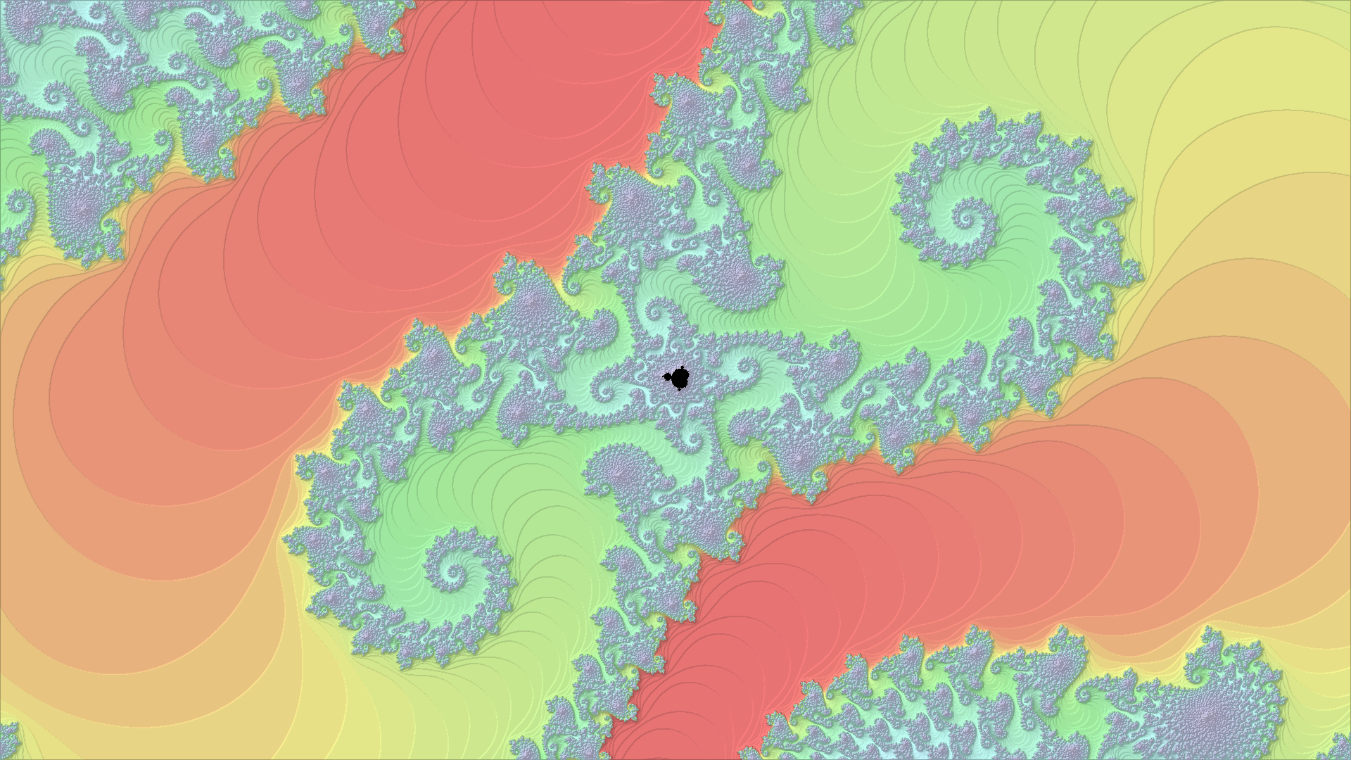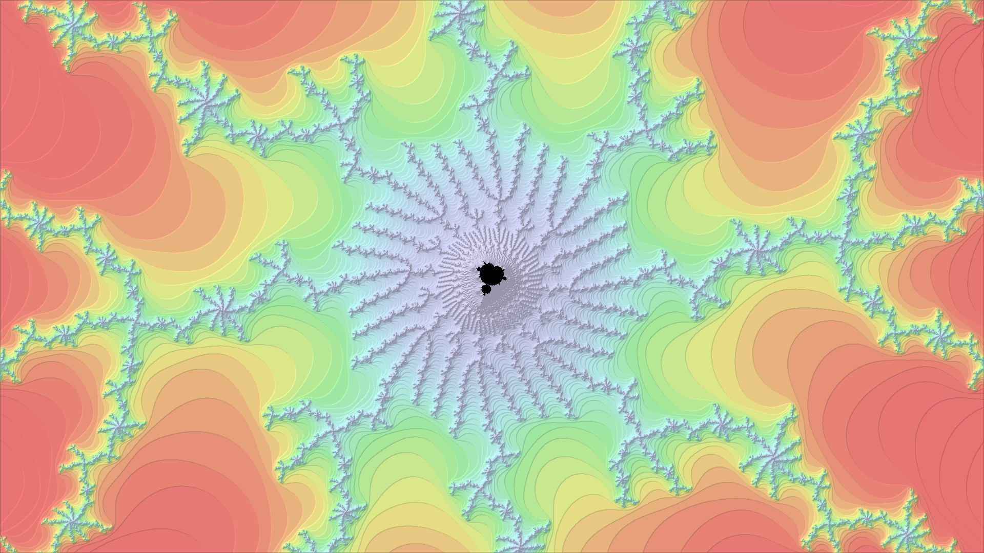 And what's more I've been doing some experiments with hill-shading to make the images reveal more of the structure, and also playing with the color palette so that the black of the actual Mandelbrot stands out better.